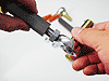 51. Take the shorter 1/4" nylon air line that has one of the ends melted closed and insert the open end into the push-in fitting on your ORO SwayLOC air cylinder closest to the latch. Keep the length of air line whole and Leave the melted end intact.