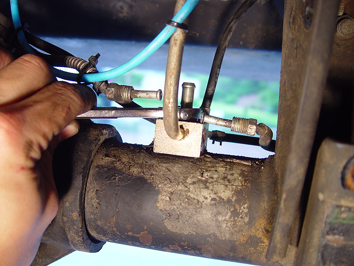 89. Use a 3/8" flare nut wrench to disconnect the (2) hard lines attached to your Jeep's main rear brake line. |