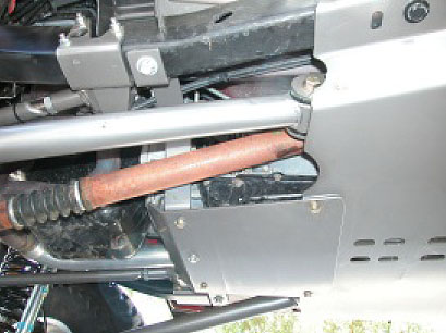 107. Secure the Full Traction Suspension differential support bracket to the V-Link upper reinforcement plate using (3) 3/8" grade 8 bolts, washers and lock nuts. You will need a 1/2" socket and wrench to do this. |